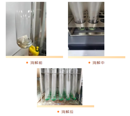 借助石墨消解仪,设定直线升温模式,分阶段将温度逐步提升至 420℃,历经 140 分钟,使牛肉样品充分消解。消解完成后,淡蓝色溶液冷却凝固,硫酸钾自然析出,这一正常现象恰是反应充分的体现。